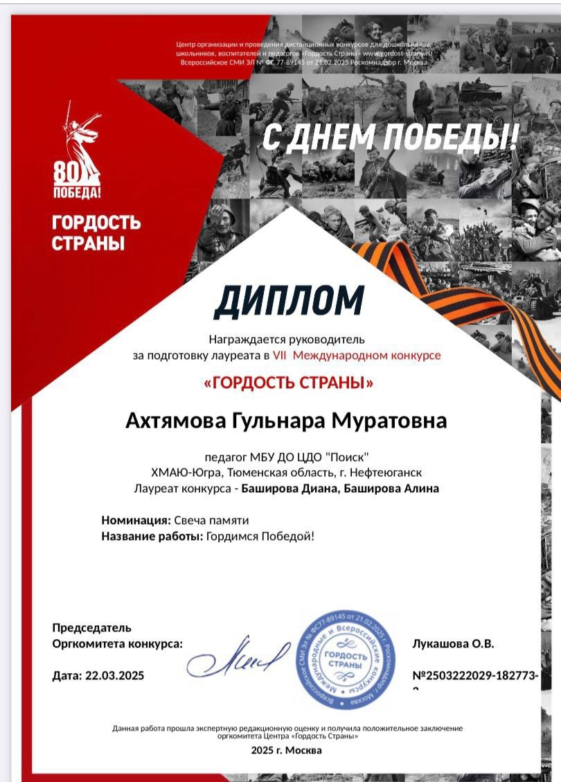Учащиеся творческого объединения "Информационные технологии" ( руководитель Ахтямова Г. М.) стали победителями и призёрами городском конкурсе "В мирном мире жить " и конкурсе на оформление лучшей фотозоны городского фестиваля научно - технического творчества и прикладного искусства " От замысла к творчеству " .