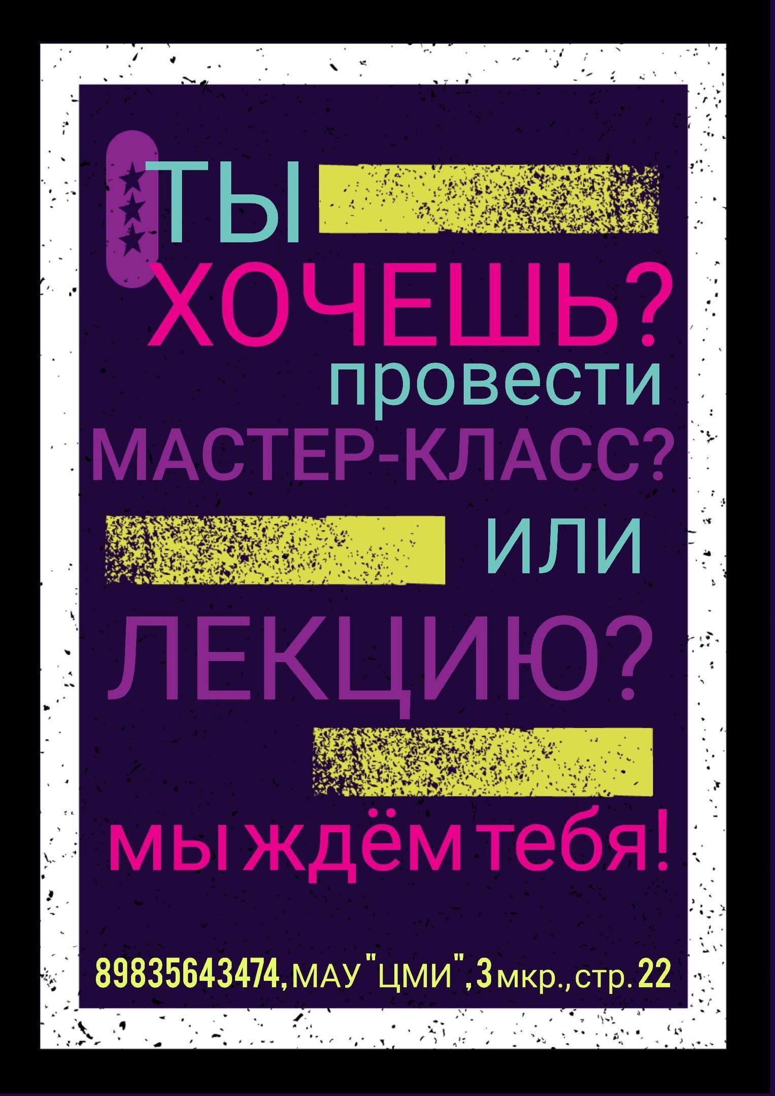 А вы знали, что теперь можно делиться своим творчеством прямо в Центре молодёжных инициатив! Творческая мастерская Арт-МОТИВАЦИЯ открыта для всех. Проводить мастер-классы и лекции может любой, у кого есть личный опыт и желание помогать другим. Для этого лишь нужно: 1.Определиться с темой лекции или мастер-класса. 2.Составить краткий план и сообщить, какие инструменты и материалы нужны. 3.Заявить о себе лично в ЦМИ (3 мкр., стр. 22) или написать в сообщения группы vk.com/cmi_yugansk. 4.Дождаться назначенной даты. 5.Провести задуманное и стать новой звёздочкой Арт-цеха! Специалисты Центра молодежных инициатив будут рады приветствовать любую идею, ведь они считают, что Арт-МОТИВАЦИЯ - это то место для самореализации, которое искали именно вы!
