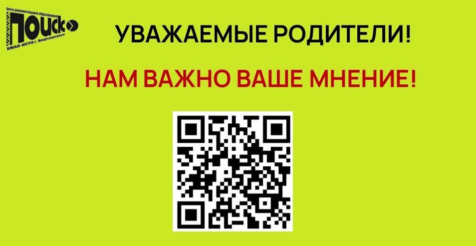 Уважаемые родители! ⚡Вы можете оставить мнение о нашей организации. Чтобы оценить условия осуществления образовательной деятельности наведите камеру Вашего телефона и отсканируйте QR-код.Перейдя по ссылке, Вы сможете: оценить условия осуществления образовательной деятельности: открытость и доступность информации об организации; комфортность условий осуществления образовательной деятельности; доброжелательность, вежливость работников; удовлетворенность условиями осуществления образовательной деятельности; доступность образовательной деятельности для инвалидов оставить отзыв.📌Опрос можно пройти по ссылке clck.ru/3M7DtA📌Или по куар-коду (прикреплен)