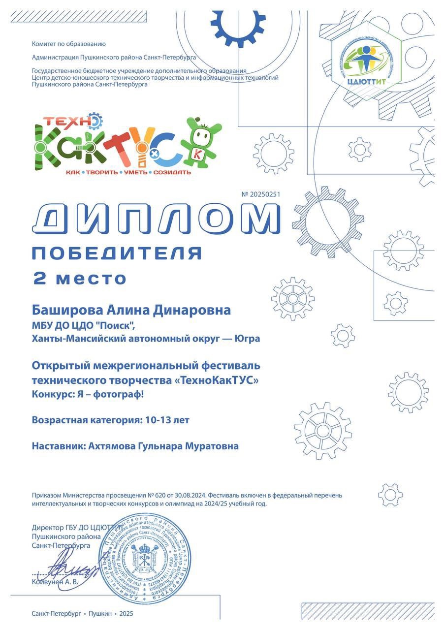 Месяц май - подведение итогов... 📝 Башировы Диана и Алина, учащиеся объединения "Информационные технологии " центра "Поиск" , стали победителями открытого межрегионального фестиваля технического творчества "ТехноКакТУС" 🔥🔥🔥Конкурс входит в Перечень мероприятий,рекомендованных к участию Минпросвещения РФ. 🌟Поздравляем девочек и наставника - педагога дополнительного образования Ахтямову Гульнару Муратовну с заслуженной победой.💐💐💐Успехов в новом учебном году, звёздочки "Поиска"! 🌟🌟🌟