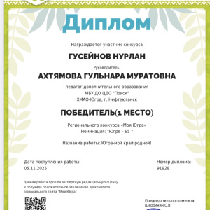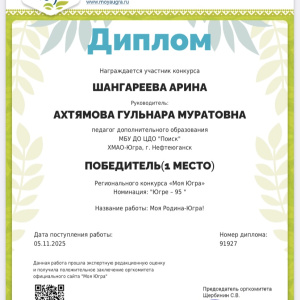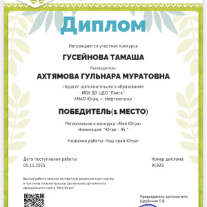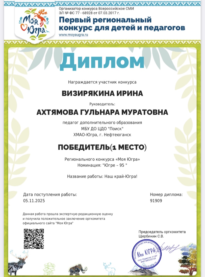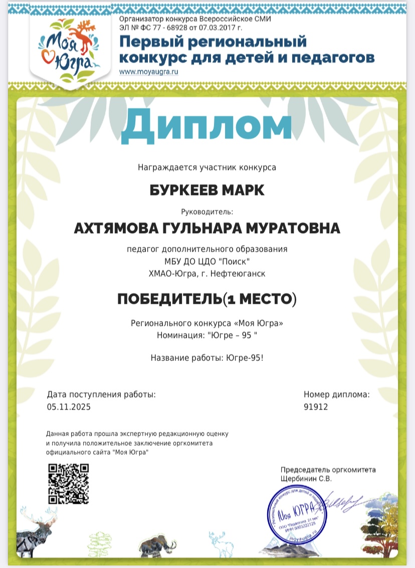 Специально к юбилею учащиеся объединения "Информационные технологии" приняли участие в региональном конкурсе "Моя Югра" и стали победителями. Поздравляем ребят и руководителя объединения Ахтямову Гульнару Муратовну! Желаем творческих успехов !