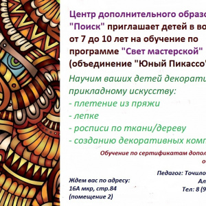 В Центре дополнительного образования "Поиск" стартует новая программа "СВЕТ МАСТЕРСКОЙ"