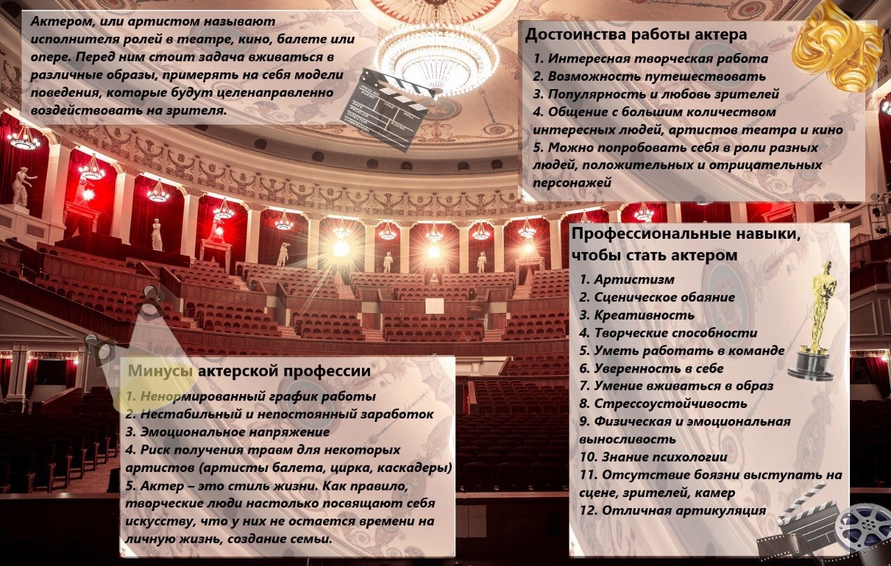 Средняя общеобразовательная школа Nº14 поделилась с нами полезной информацией о профессии «Актер театра, кино, оперы и балета»