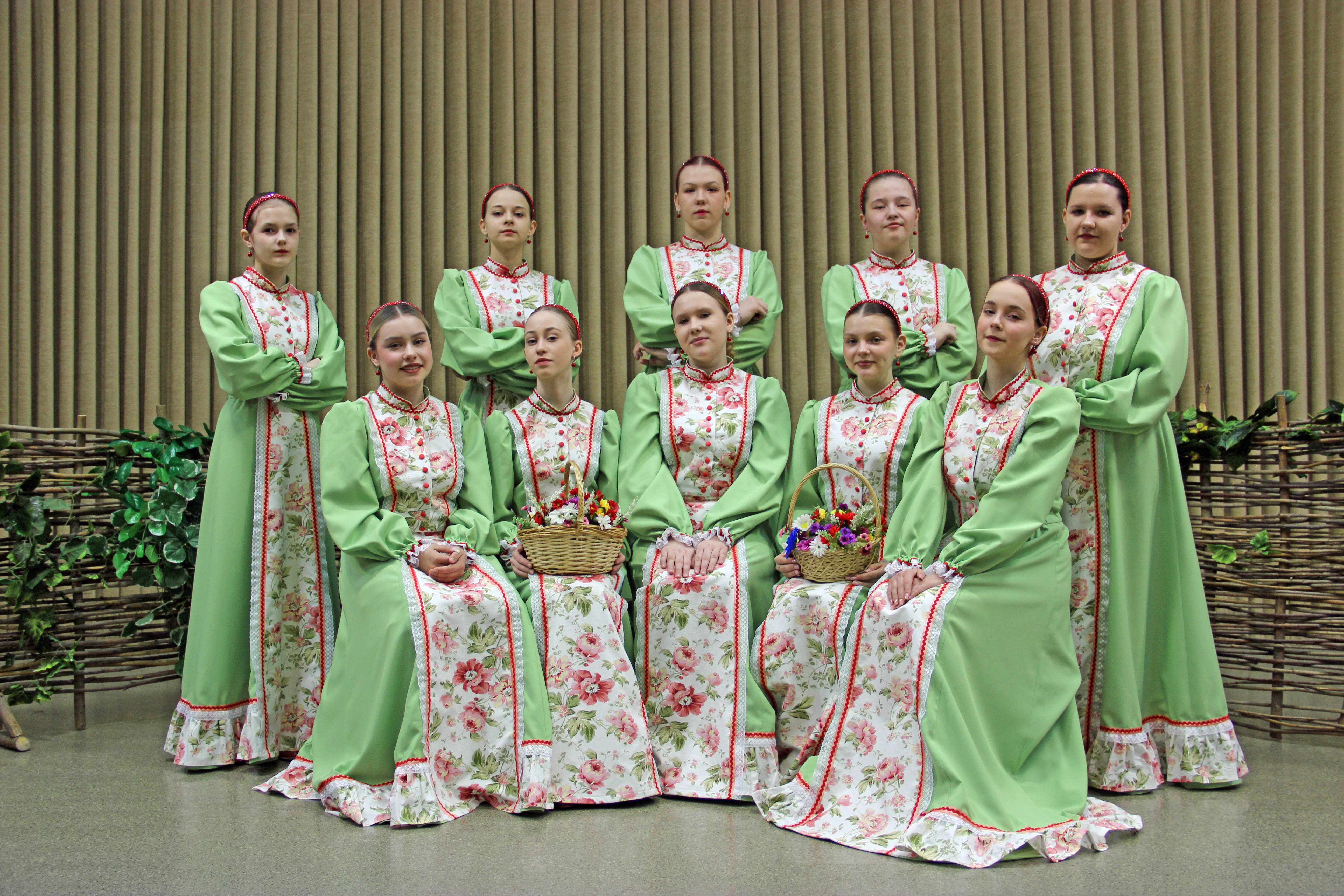 Девочки Образцового ансамбля «Лад» в прекрасных весенних костюмах сшитых на счет средств гранта губернатора, выделенных для реализации проекта «Дети детям». Благодаря данному гранту ребята смогут радовать зрителей своими новыми творческими номерами и в рамках проекта, и на других концертных мероприятиях города!