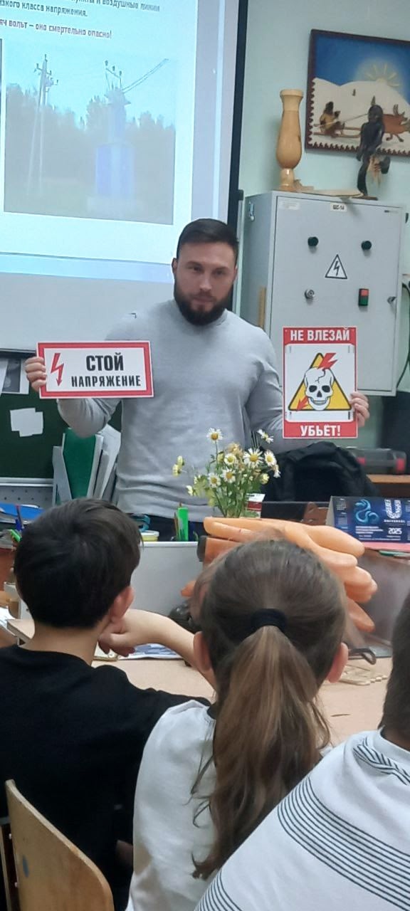 В целях профилактики детского электротравматизма в центре дополнительного образования «Поиск» состоялась встреча с ведущим специалистом по охране труда службы производственной безопасности и производственного контроля филиала АО «Россети Тюмень» Нефтеюганские электрические сети Яковищуком Дмитрием Романовичем.