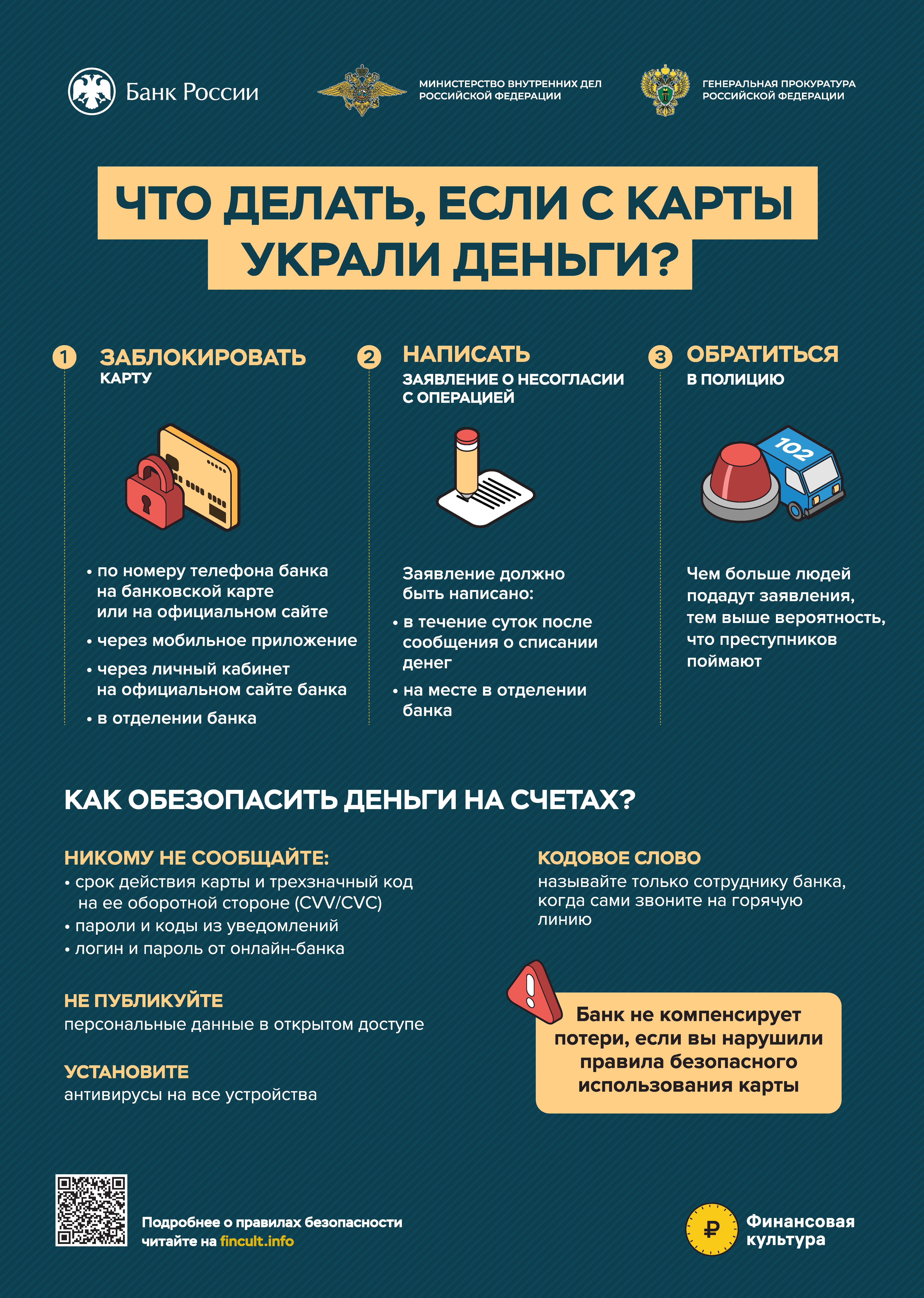 УОС МВД России принимаются дополнительные меры, направленные на профилактику преступлений в сфере компьютерной информации, телефонных и банковских мошенничеств. В настоящее время Банком России разработаны информационно просветительские материалы (видеоролики, плакаты, брошюры, лифлеты) по актуальным темам финансовой грамотности населения.