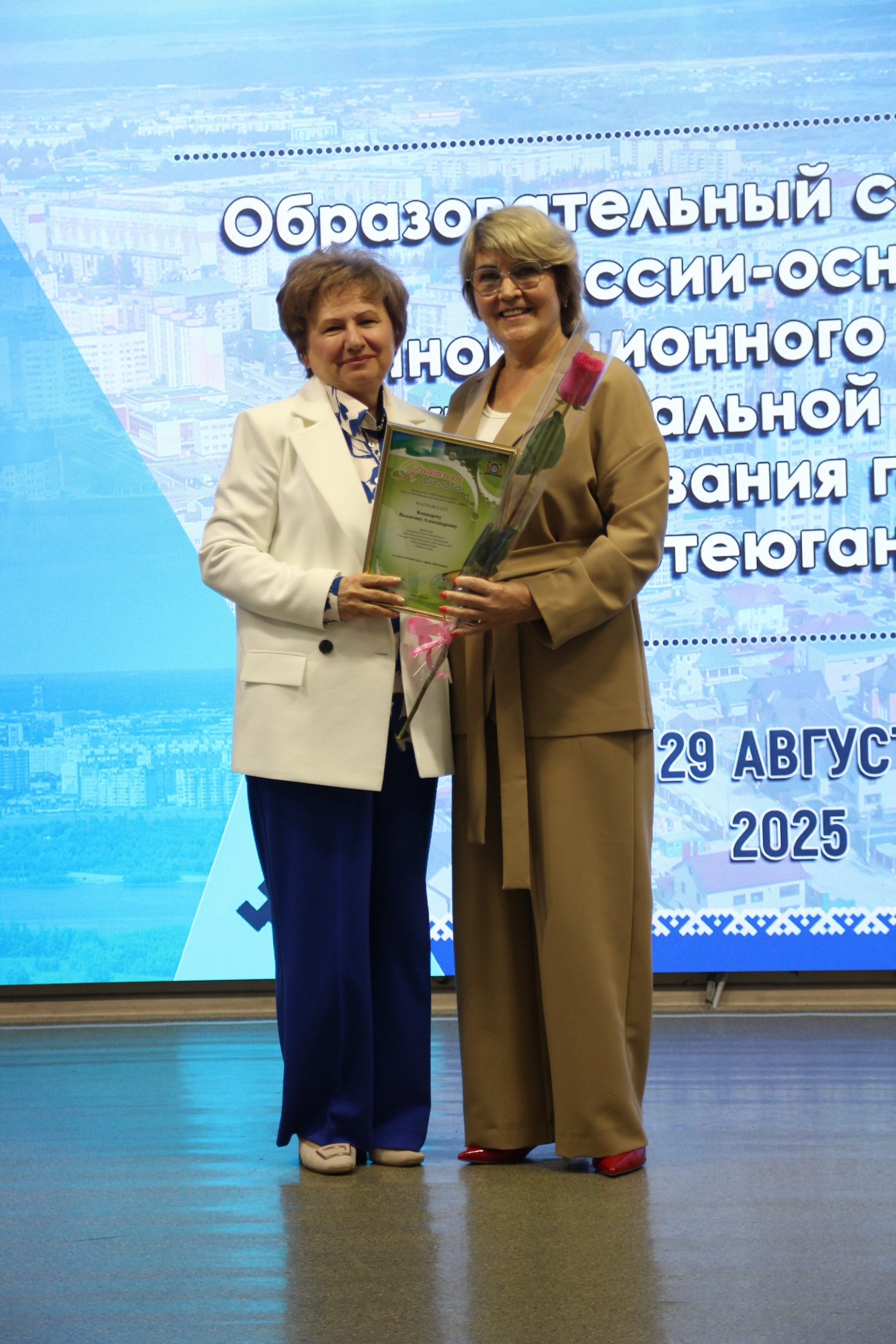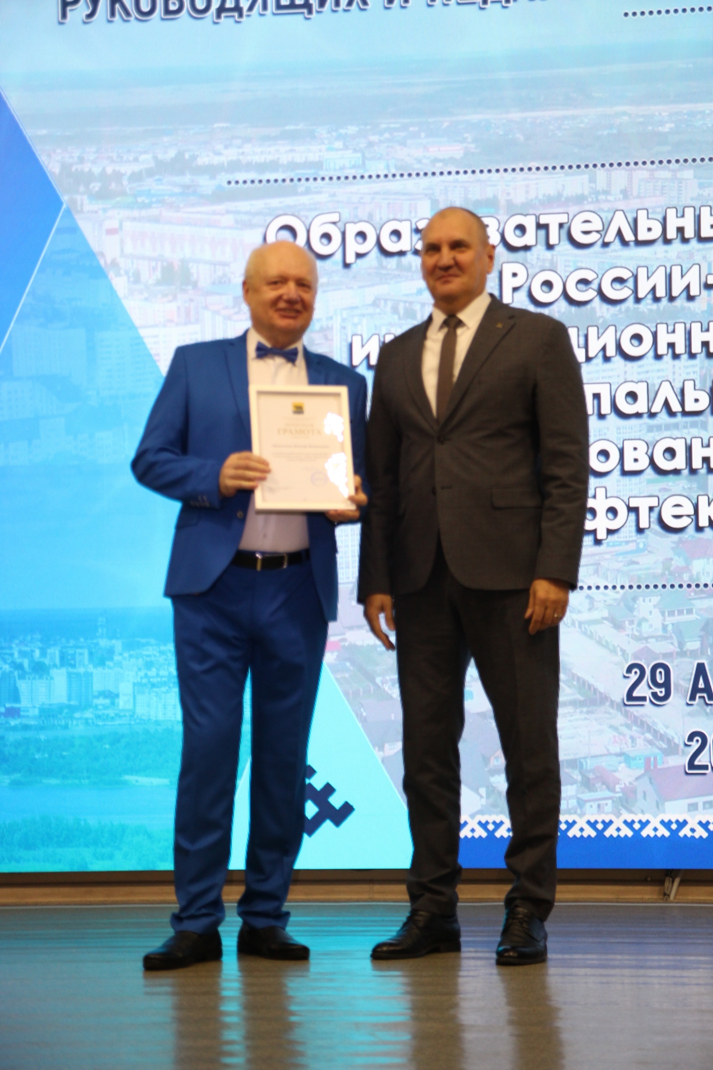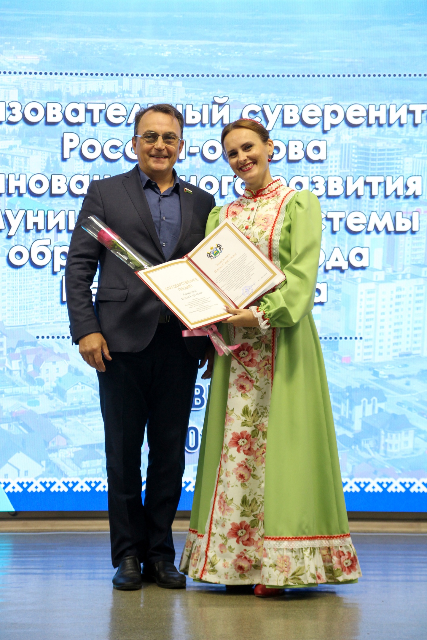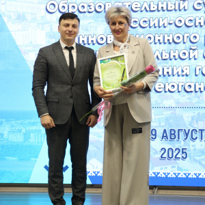 Поздравления прозвучали и от заместителя председателя Думы города Нефтеюганска, депутата Думы города Елены Георгиевны Власовой, депутата Тюменской областной Думы Владимира Викторовича Ермолаева, директора департамента образования администрации города Нефтеюганска Дмитрия Викторовича Бородина и председателя профсоюзной организации Нефтеюганского горкома работников народного образования и науки Российской Федерации Татьяны Анатольевны Курмачевой.Владимир Викторович Ермолаев вручил благодарственное письмо Тюменской областной Думы Владе Сергеевне Хализовой, педагогу дополнительного образования МБУ ДО «ЦДО «Поиск», в знак признания добросовестного труда и успехов в работе.Дмитрий Викторович Бородин подвел итоги прошедшего учебного года, представил достижения муниципальной системы образования и обозначил перспективы развития на будущее.