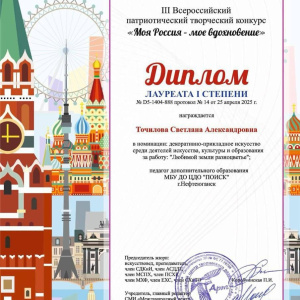 Молодой, перспективный и супер - талантливый педагог центра "Поиск" Точилова Светлана Александровна приняла участие во всероссийском творческом конкурсе «Моя Россия-моё вдохновение».