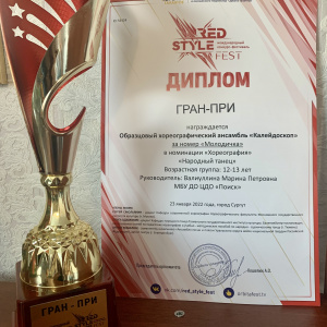 По итогам фестиваля образцовый хореографический ансамбль «Калейдоскоп» получил Гран-При и денежный грант на развитие творчества в размере 10 000 рублейза танец «Молодичка». Ансамбль «Калейдоскоп» постоянный победитель многих Всероссийских и Международных конкурсов. Каждый выход на сцену для ребят этого коллектива ступень к творческому росту. К каждому конкурсу дети очень серьёзно готовятся, берутся исполнять более сложные хореографические композиции.