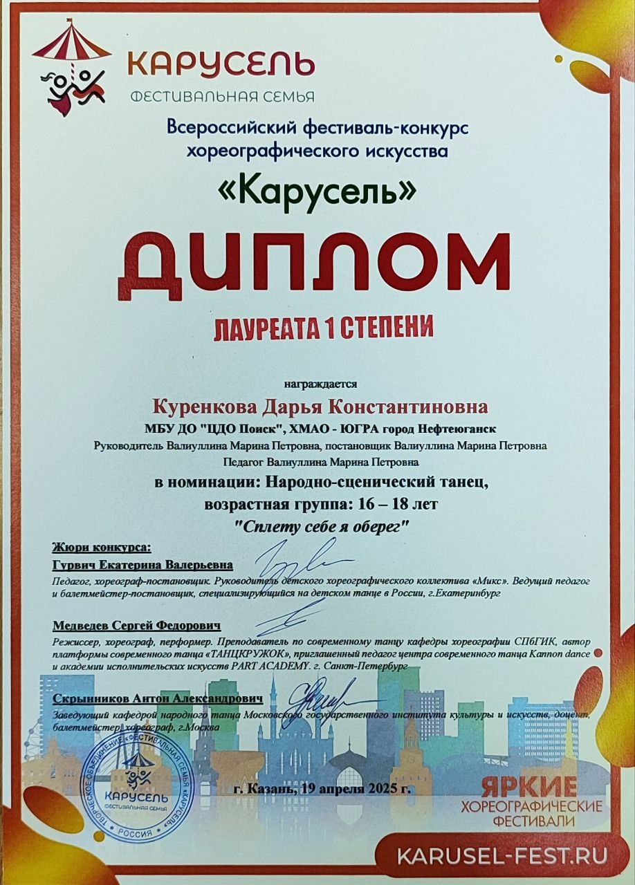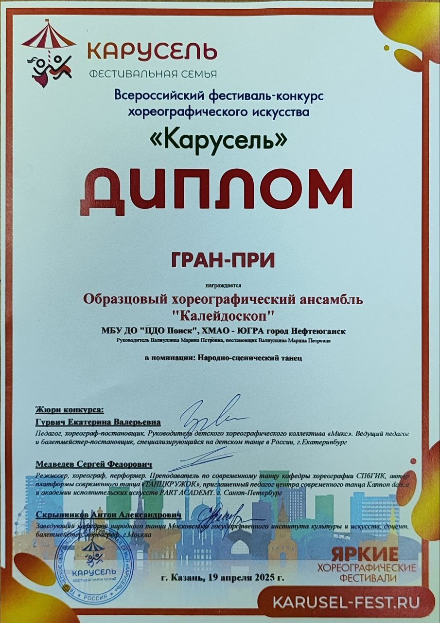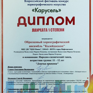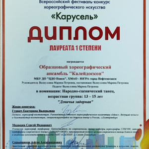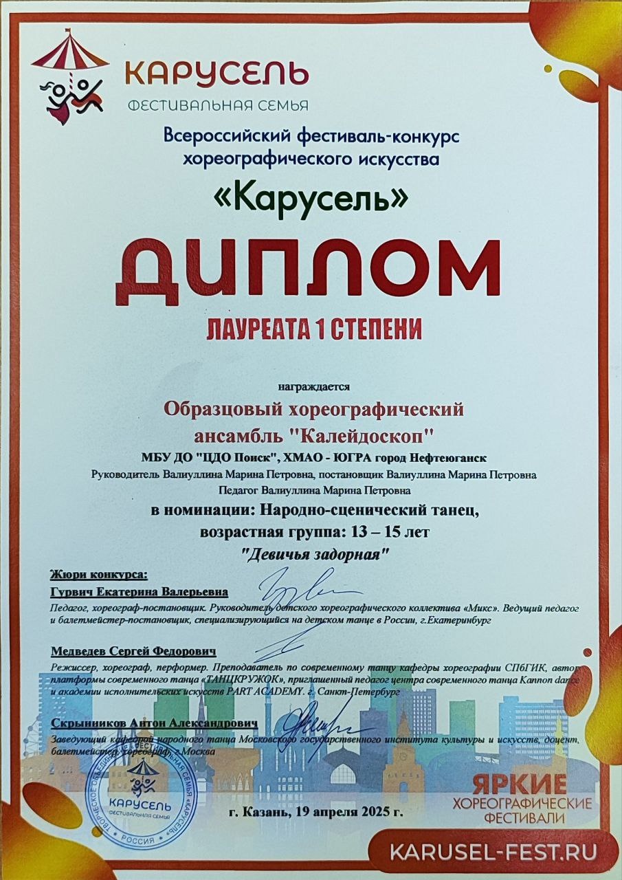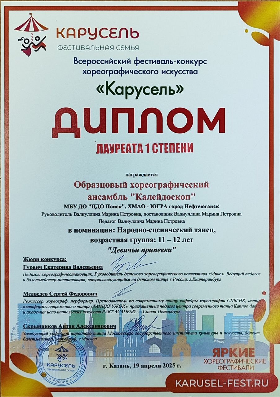 С 18 по 20 апреля в городе Казани состоялсяВсероссийский фестиваль - конкурс хореографического искусства "Карусель". Цели и задачи конкурса. Создание творческой площадки для дальнейшего развития и привлечения талантливых детей, молодёжи и творческих людей разного возраста.