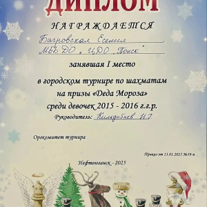 Обучающаяся творческого объединения "Белая ладья" ( руководитель Кильдибаев Н.Г.) центра дополнительного образования "Поиск" Багровская Есения заняла