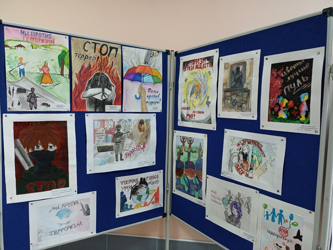 В целях формирования у детей и подростков негативного отношения к идеям экстремизма и терроризма 13 декабря 2021 года в центре дополнительного образования «Поиск» проходила выставка детских рисунков на тему «Терроризм - угроза обществу» среди учащихся 1-11 классов образовательных учреждений города.