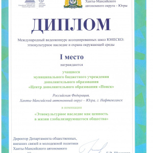 Работа "Популяризация родных языков коренных малочисленных народов Севера", представленная Детской телестудией "Фокус" в номинации «Этнокультурное наследие как ценность в жизни глобализирующегося общества»., удостоена ДИПЛОМА 1 СТЕПЕНИ. "
