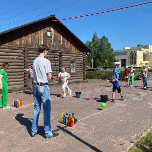 А ещё для нас подготовили игровую программу. Две команды в эстафете соревновались, кто быстрее соберёт цвета флага. Победила команда девочек. Именно они оказались быстрее, ловчее и смекалистее. В конце игры победителям вручили открытки.