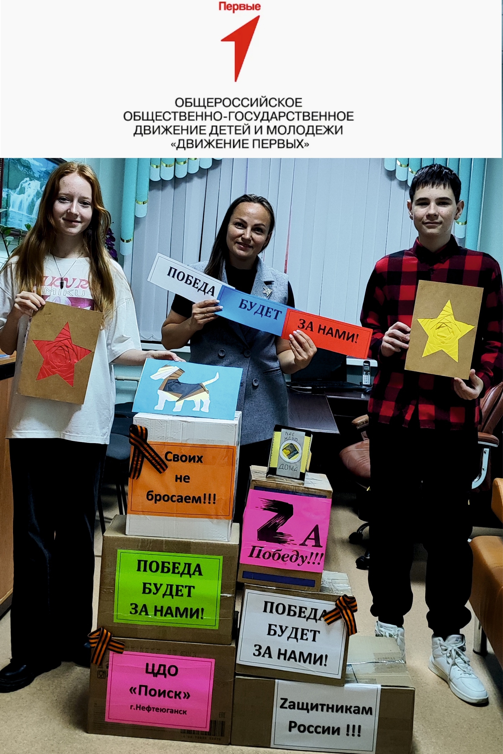 В рамках проекта «Мы вместе» активисты Общероссийского общественно-государственного движения детей и молодежи «Движения первых» под руководством куратора первичного отделения МБУ ДО «ЦДО «Поиск» Татьяны Александровны Коротковой, присоединились к сбору гуманитарной помощи участникам СВО.