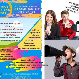 Детская телестудия "Фокус" приглашает на обучение юных корреспондентов и дикторов.