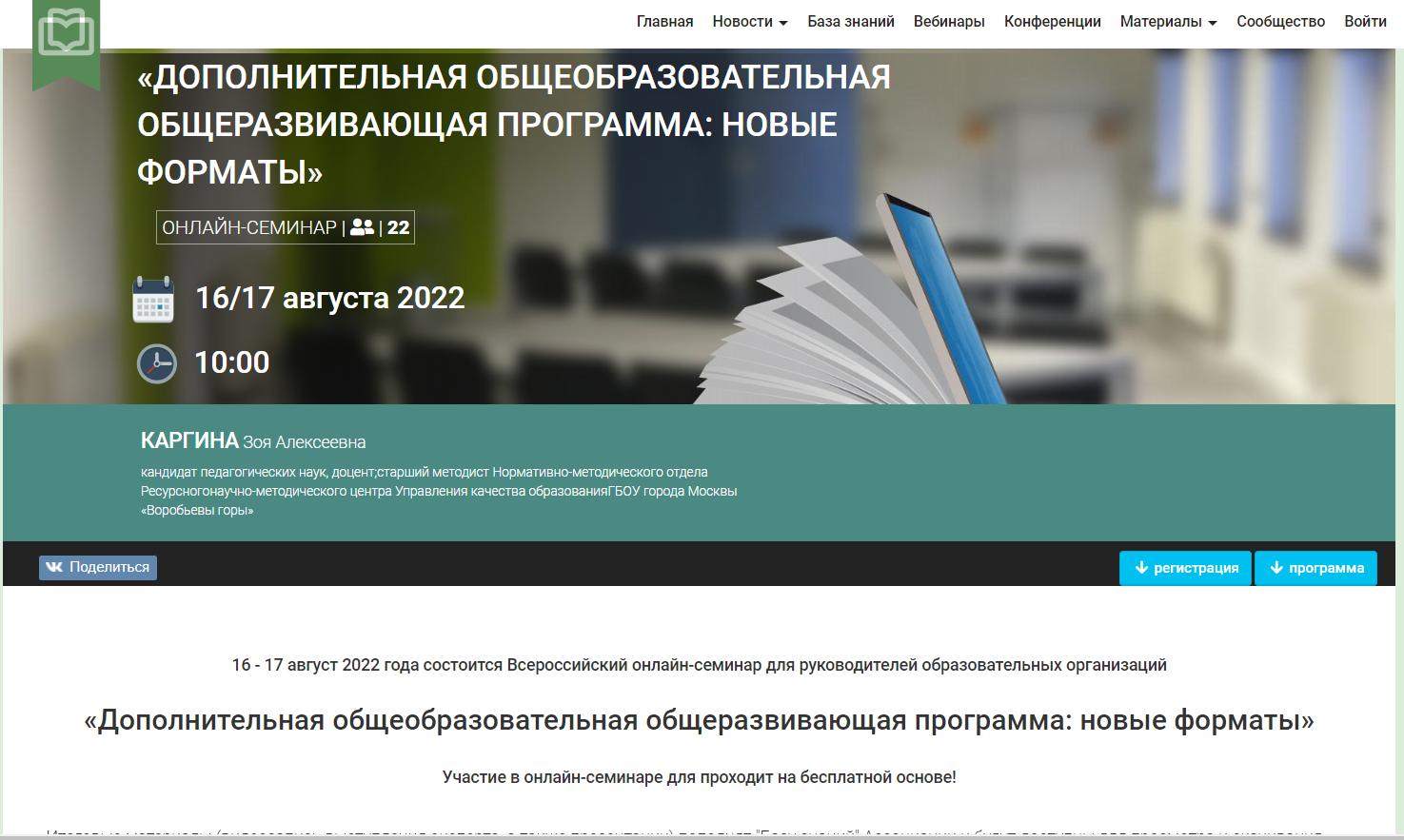 - Для участников онлайн семинара предусмотрена обязательная регистрация на странице мероприятия: