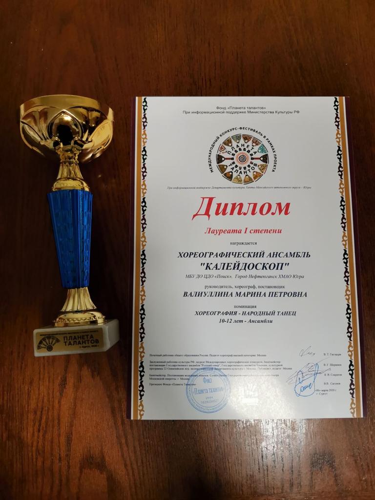 Хореографический ансамбль «Калейдоскоп» с Международного конкурса "Планета талантов» в городеСургут привез диплом лауреата первой степени! Молодцы, ребята. Творческих успехов, вам, калейдоскоповцы!