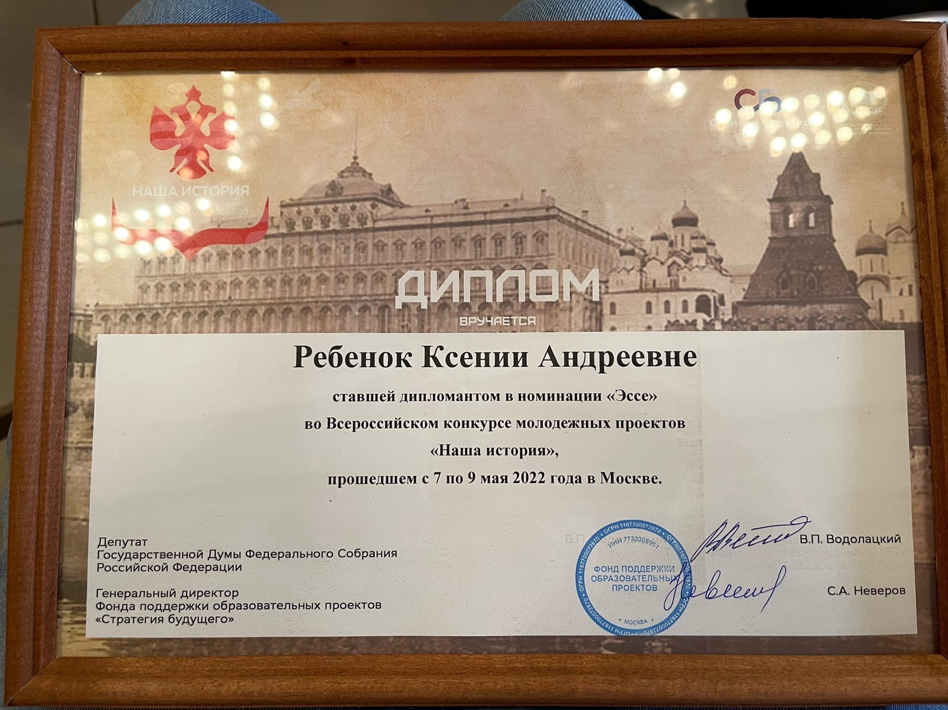 приняла участие в Всероссийском конкурсе молодежных проектов "Наша история", организованный Фондом поддержки образовательных проектов "Стратегия будущего"!
