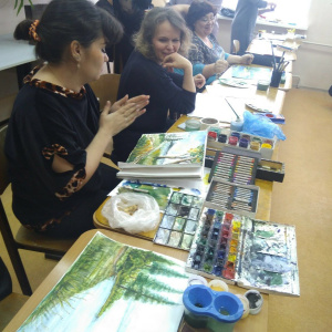 Мастер-класс члена Международного союза художников и графиков, директора художественной галереи «Югория» Савостьянова Николая Владимировича на тему «Пейзаж. Цикл пейзажей» помог многим профессионалам и начинающим педагогам научиться новым приемам современной живописи.