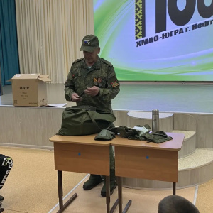 Равиль Валеймухаметович представил вниманию ребят военную экипировку, позволив прикоснуться к атрибутам ратного труда.