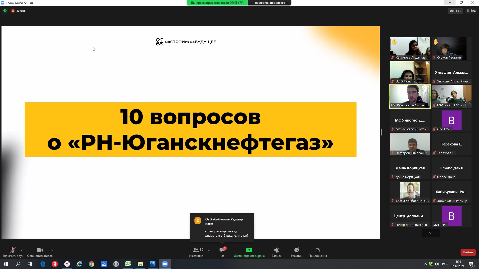 Определяешь траекторию своего будущего и ВУЗ в котором будешь обучаться? Тогда тебе к нам!!!! В этом году стартовал проект «НаСТРОЙсянаБУДУЩЕЕ» Создатели проекта: молодые специалисты ОО «РН-Юганскнефтегаз» и Центр дополнительного образования «Поиск» задались целью популяризации профессий нефтегазодобывающего направления и привлечение школьников к получению профобразования по востребованным в компании направлениям. В рамках проекта «НаСТРОЙсянаБУДУЩЕЕ» 7 декабря молодые специалисты «РН-Юганскнефтегаз» провели нетворкинг «РН-Юганскнефтегаз: школа - вуз - предприятие» для учащихся 9 классов школ города.