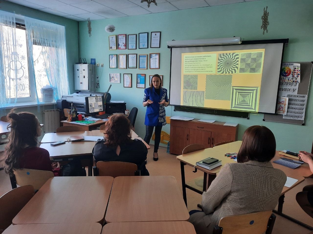 Педагог дополнительного образования Короткова Татьяна Александровна провела мастер-класс на тему "Оптическое рисование".Вместе с коллегами изучили необычные методы подхода к изображениям, расширили представления использования обычных линий. Такое рисование способствует работе творческого мышления.