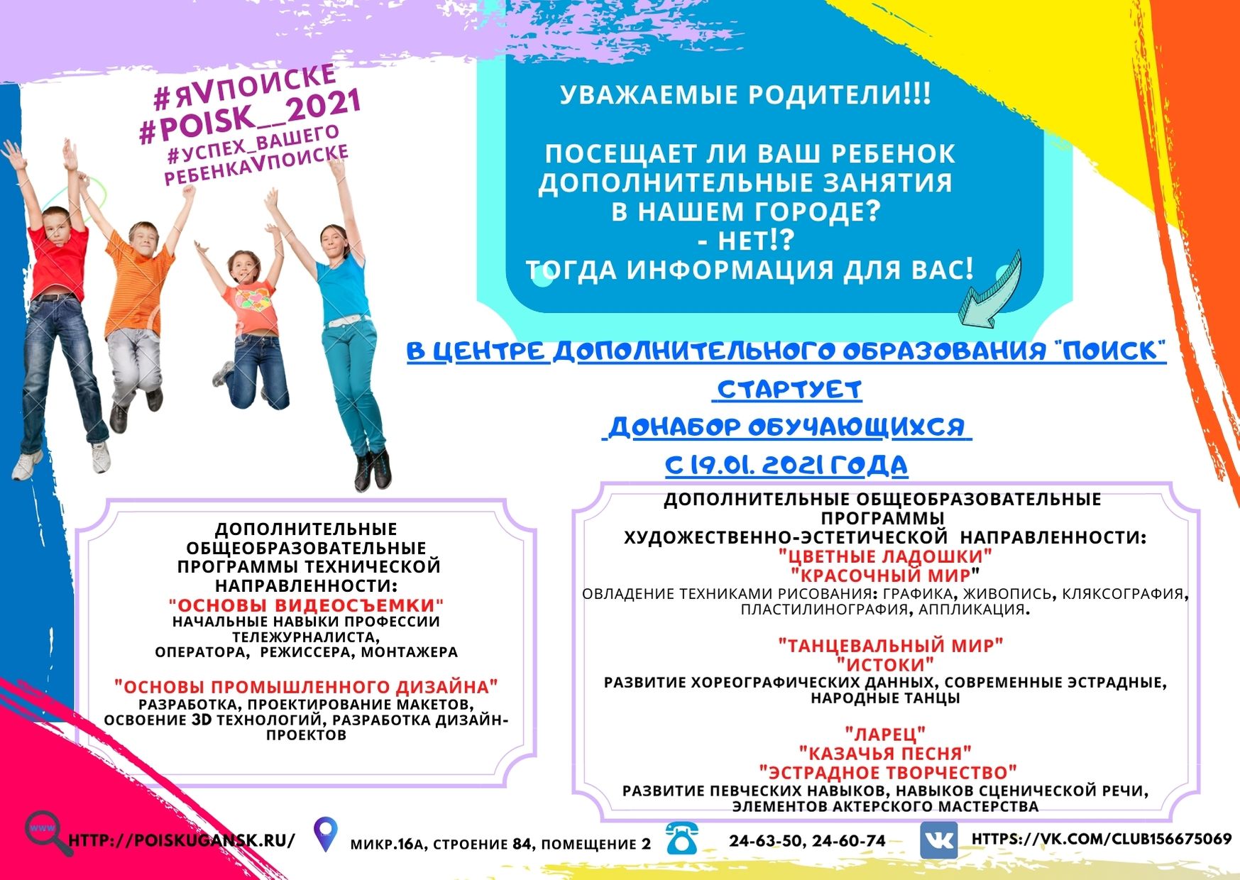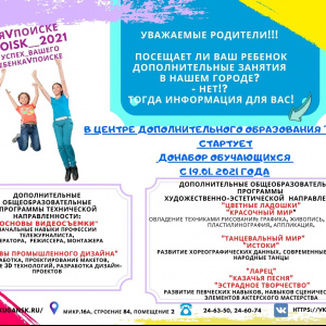 В ЦДО "Поиск" стартует донабор обучающихся с 19.01.2021 года.