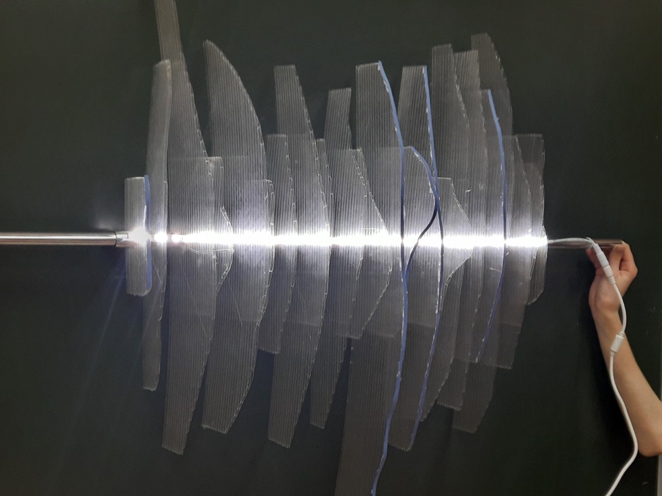30.10.2021 в галерее "Стерх" г. Сургута состоялась выставка световых арт-объектов "Парад планет", в которой приняли участие на равне со взрослыми дизайнерами учащиеся объединения "Дизайн" МБУ ДО "ЦДО "Поиск" со своим светильником-бра "Голосовое сообщение". Состав команды: Галимова Амина, Чечевицин Илья, Метельков Александр, Абдулина Анна, Эрдяева Оюна. Светильник несет в себе образ зашифрованного в парралельных линиях послания.